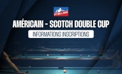 Les inscriptions pour votre participation à la scotch double cup 2026 ouvriront à partir du 14/01/2026 et se termineront le 08/02/2026 à 20h. Vous pouvez renseigner le bordereau d’inscription et le retourner à americain@ffbillard.com copie ffb@ffbillard.com. Dès notre retour de confirmation par mail, vous pourrez inscrire le capitaine de l’équipe sur le lien suivant et vous acquitter des frais d’inscriptions de 80€. Inscriptions Merci à toutes et tous pour votre participation. La Commission Nationale Américain